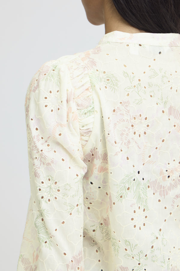 B.Young Joa Floral Broderie Anglais V-Neck Blouse