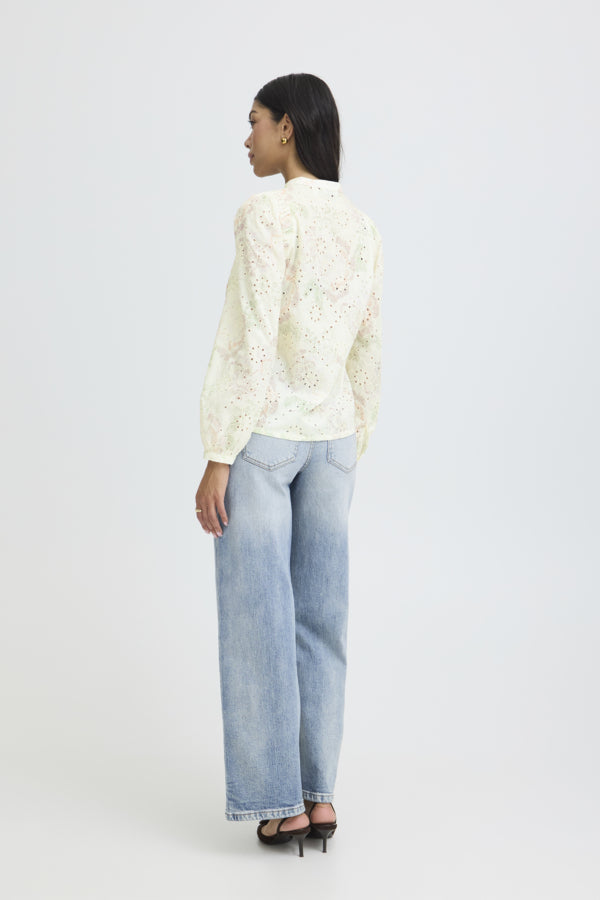 We get a lot of very pretty blouses in the shop, but this one is one of our favourites! Featuring long sleeves, a slight puff shoulder and a beautiful pattern throughout, the B.Young Joa Floral Broderie Anglais V-Neck Blouse will pair easily with so many things in your wardrobe.