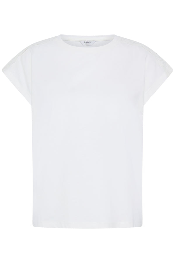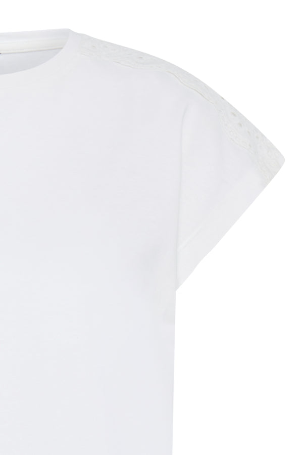 B.Young Prismi Lace Broderie Anglaise Shoulder T-Shirt - Off-White