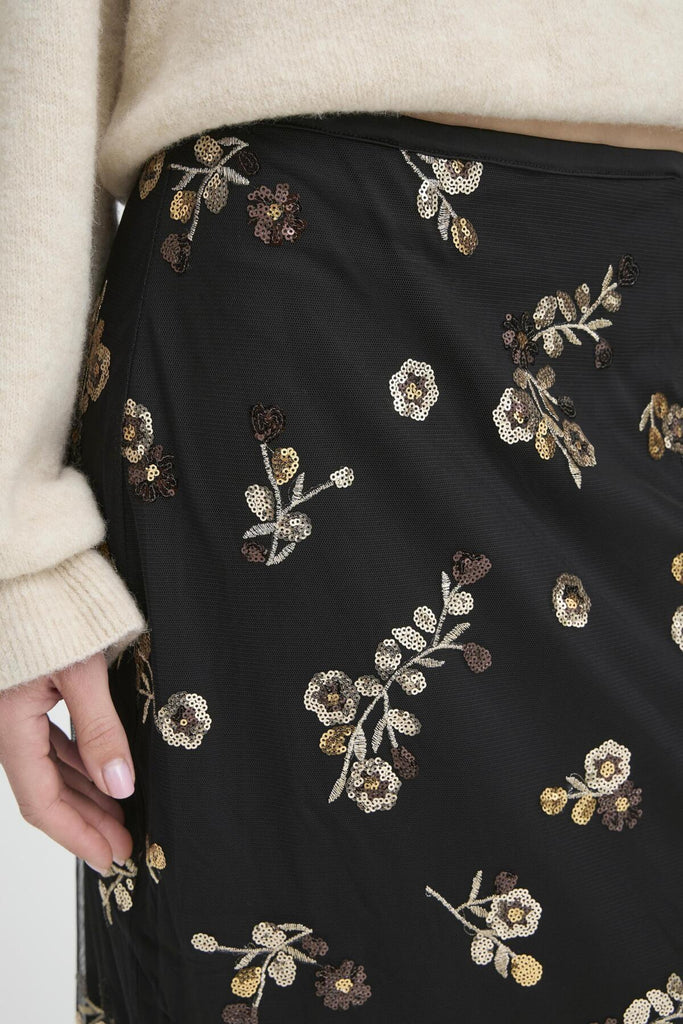 Add texture and pattern to your wardrobe with this beautiful skirt. The B.Young Renaz Floral Pencil Skirt features a floral overlay with a sheer effect at the hem, a straight cut and a knee length. Wear yours with a jumper and heels this Autumn.