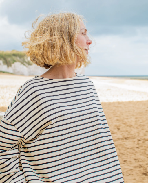 The Chalk Bryony Oversized Breton Stripe Top is a loose fitting long sleeve Breton style top. Its classic round neck, drop shoulder seams and side vents makes this top an easy wear. Pair yours with jeans and boots in Autumn and shorts in Summer.