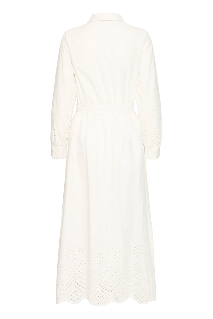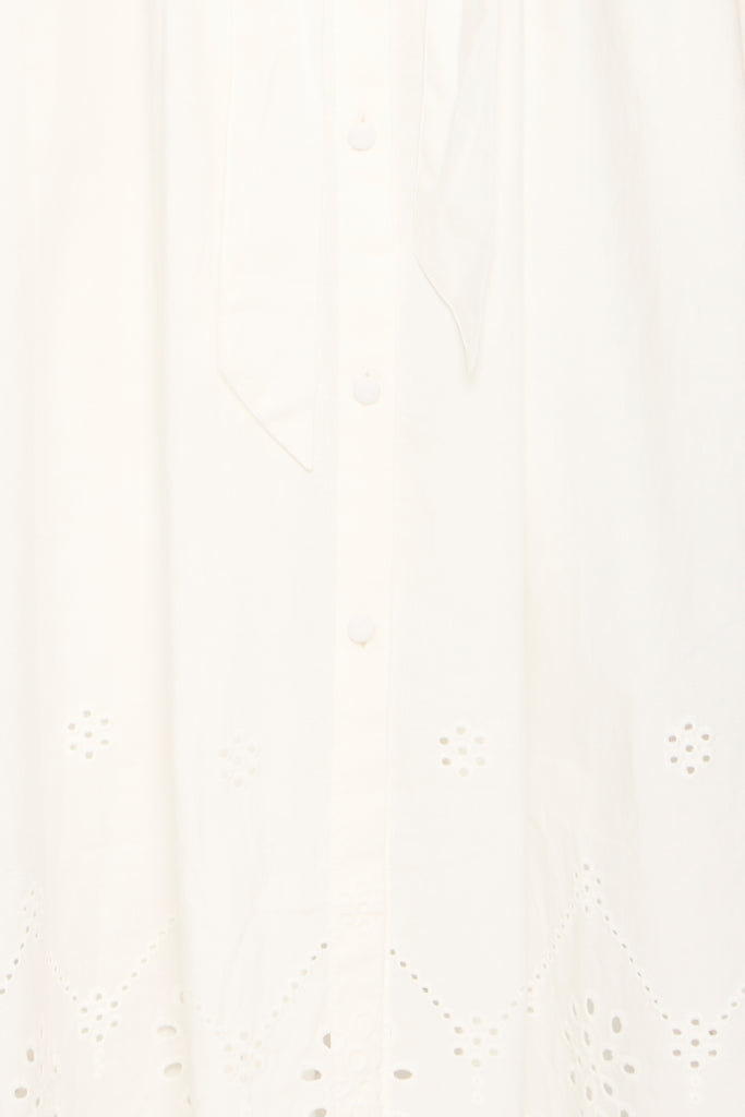 The Glinda Dress in white is a beautifully feminine piece, perfect for warm days and effortless summer styling. Made from breathable 100% cotton, it features delicate broderie anglaise embroidery that adds texture and timeless charm.