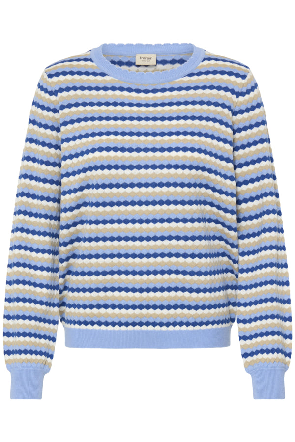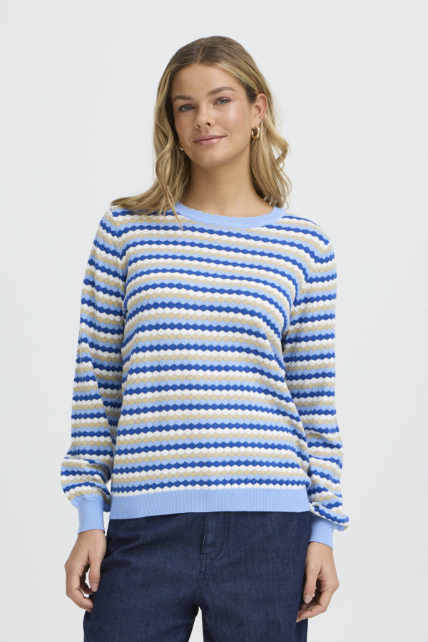 Fransa Caia Honeycomb Stripe Knit Jumper - Blue Mix