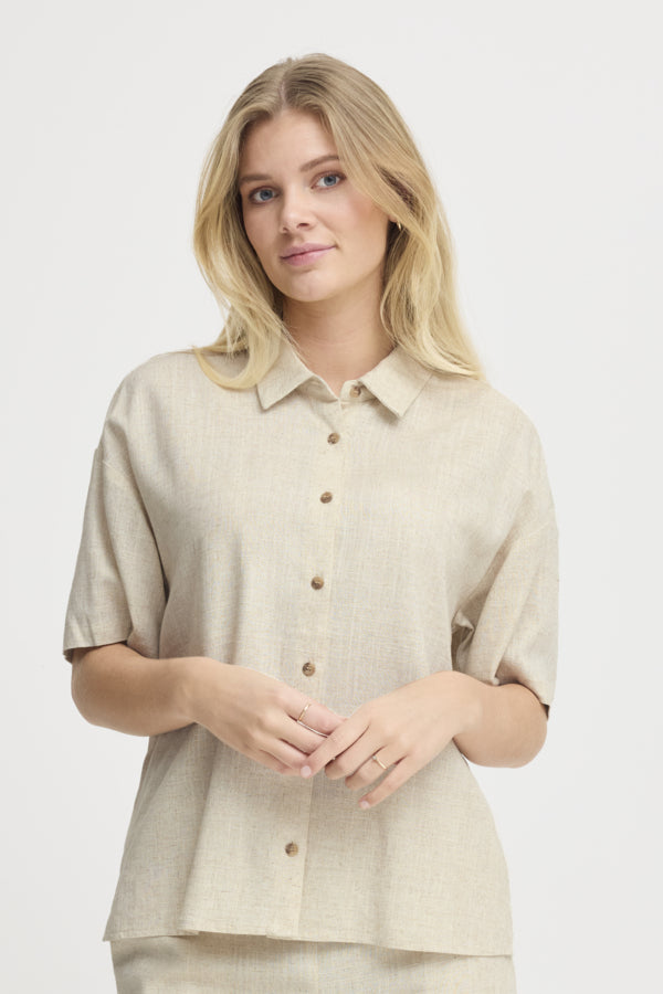 Fransa Juna Short Sleeve Linen Blend Shirt