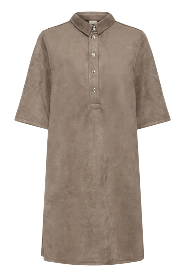 Fransa Suella Faux Suede Button Collar Dress