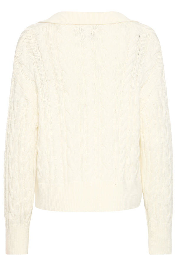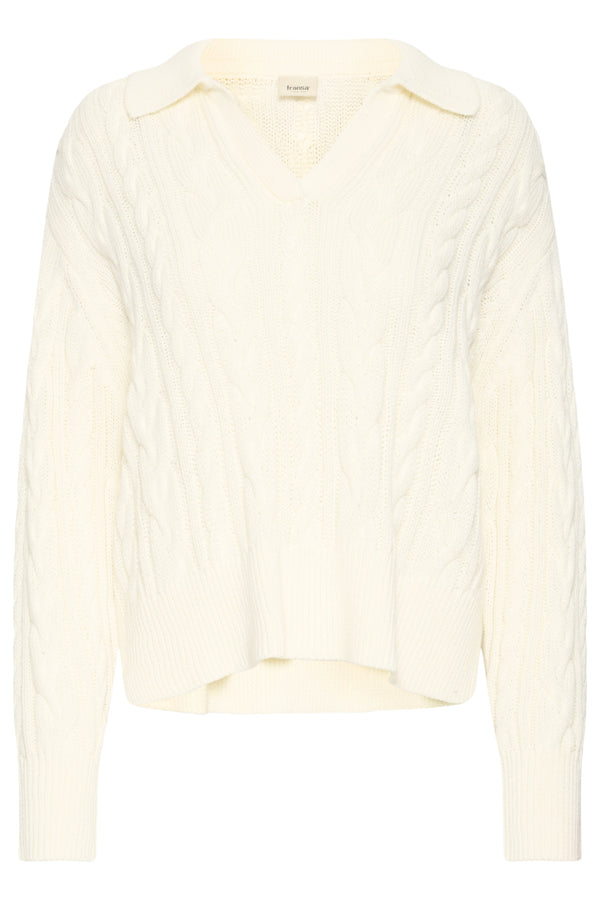 Fransa Vivian V-Neck Collar Cable Knit Jumper - Off White