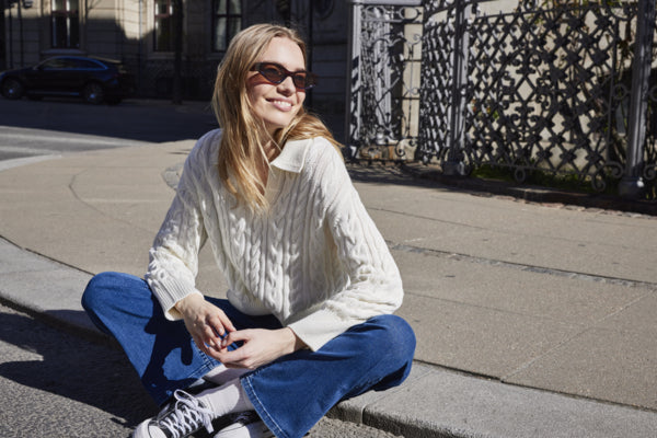 Perfect for Spring, the Fransa Vivian V-Neck Collar Cable Knit Jumper will keep you warm on cooler days. Featuring a cable knit design throughout, a v-neck with collar detail, long sleeves and a straight cut to the body. Wear yours with jeans and a cropped jacket.
