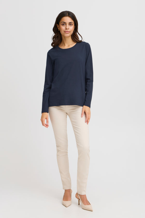 Wardrobe basics covered with the Fransa Za Long Sleeved T-Shirt. Made from the softest fabric with the perfect amount of stretch, wear yours alone or underneath jumpers for extra warmth.