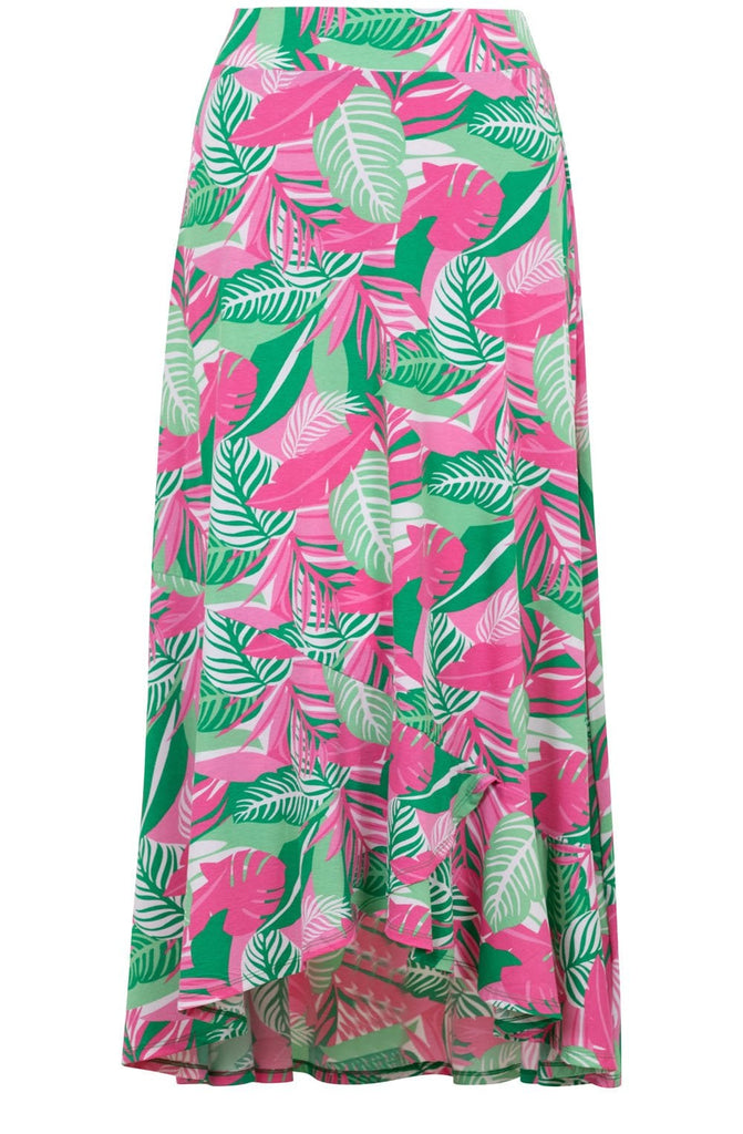 Showcasing bright and eye-catching summer style, this ladies Marble mock wrap ruffle skirt combines a striking pattern with a bold cut. Featuring a calf length finish and a deep ruffled hem, this pretty midi skirt is flowing and feminine. Pair with a strappy tank top and layer with an oversized sweater for the perfect carefree look.
