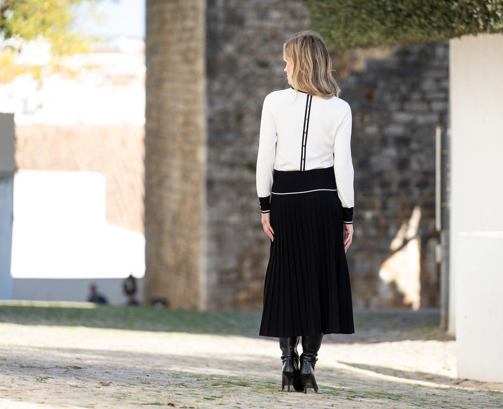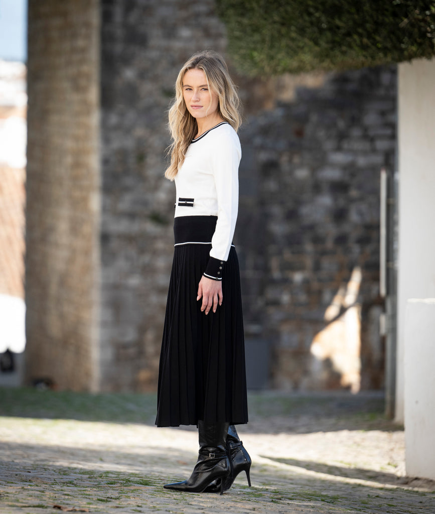 We love a two tone style we think the Marble Fashions Two Tone Pocket Jumper is the perfect knit for this season. Featuring a colour block design with 2 faux pockets to the front, this long sleeve, round neck and straight cut jumper can be worn with maxi skirts or jeans this Autumn.