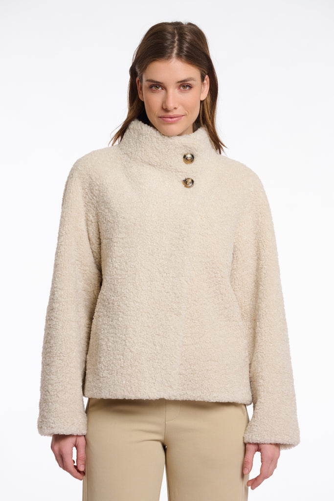 Introducing the shop favourite: the Rino & Pelle Denu Faux Fur Button Jacket. Elevate your style with this ultra-plush and soft short teddy jacket. This chic piece features side slit pockets, a two-button top front, and a push button closure for convenience. The high stand-up collar keeps you warm, too.
