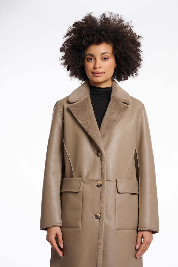 Rino & Pelle Tatiana Reversible Faux Fur Coat - Taupe