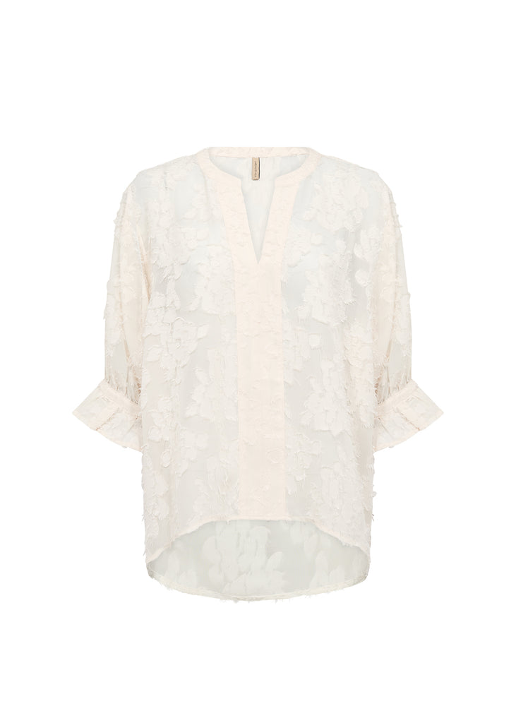 Sometimes you just need something beautiful in your wardrobe and we think the Soyaconcept Althea Textured Eyelash Blouse fits the bill. It features a delicate floral texture with eyelash finish, a V-neckline, and subtle ruffled sleeves. Pair it with tailored trousers or denim for an elegant look.