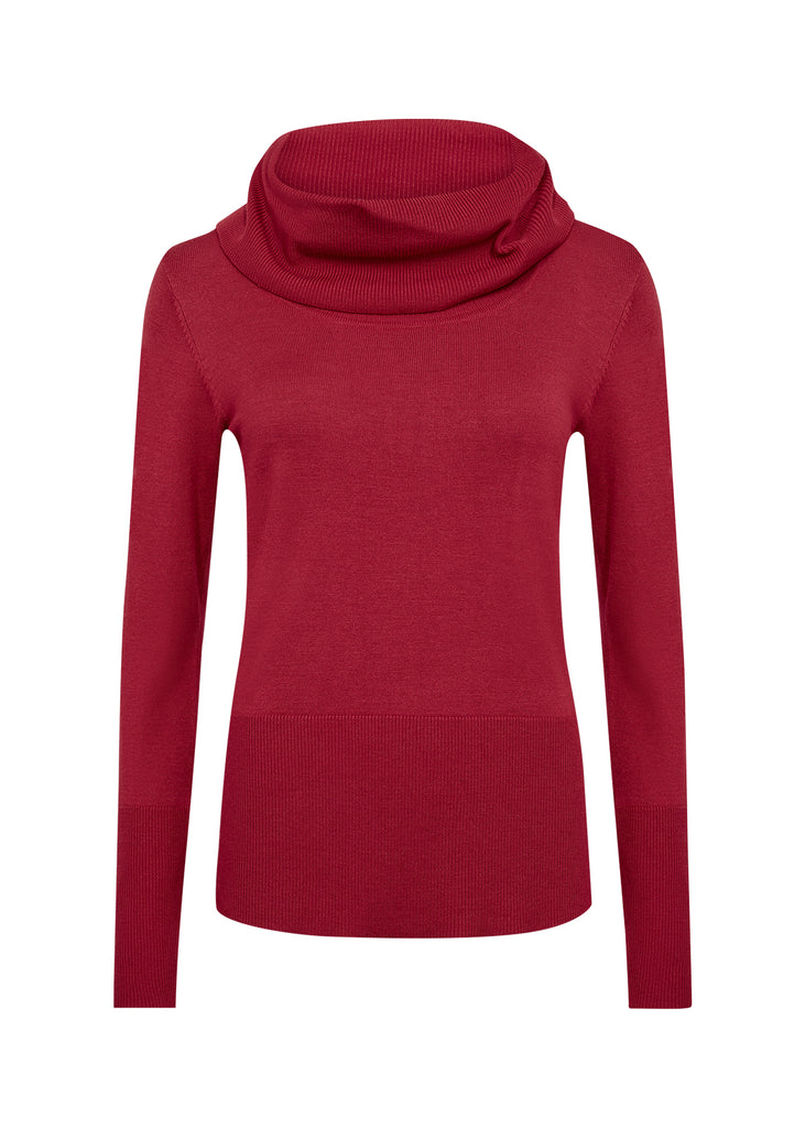 This burgundy wine shade is very 'in' this season, so make sure you add some to your wardrobe with the cosy Soyaconcept Dollie Rollneck Jumper. With long sleeves, a ribbed hem and a loose turtleneck, style yours with jeans and boots.