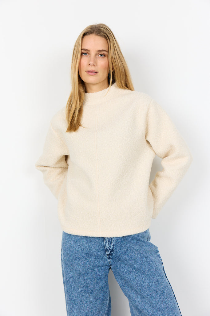 If you're looking for a top that's a little different, try the Soyaconcept Shaima Boucle High Neck Top. It features a neat high collar, long sleeves, and a textured finish. Wear yours with jeans and flats this Spring.